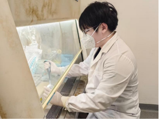 图3:论文第一作者王怡然在实验室进行实验工作