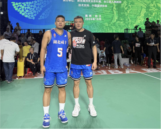 10月17日晚,大地流彩·2025年全国和美乡村篮球大赛(村BA)总决赛在贵州省黔东南州台江县台盘村圆满收官,湖北恩施咸丰白茶队荣获亚军,创造历史最好成绩。在这支荣耀之队中,两位核心后卫均与湖北恩施学院有着深厚的渊源——5号球员王超是湖北恩施学院经济与管理学院2016级财务管理专业校友,14号球员支禹捷则是音乐与体育学院的教师。这对亦师亦友的搭档,从校园球场并肩走向全国赛场,用实力与默契书写奋斗故事。
