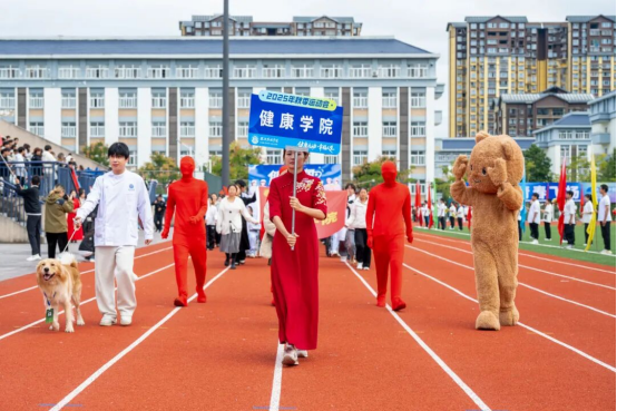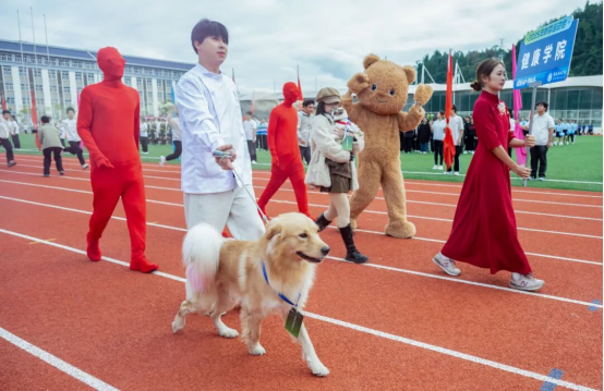 宠物“朋友”一出场,就吸引全场目光。健康学院的同学们朝气蓬勃,眉宇间尽显医者的严谨从容。他们既是守护生命的未来医者,亦是赛场逐梦的热血健儿。