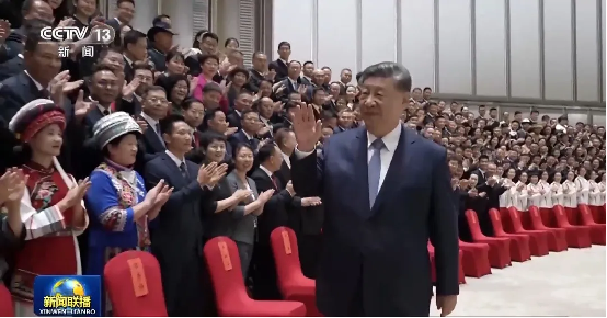 身着土家族服饰的易银秀院长被接见和表彰(左二)