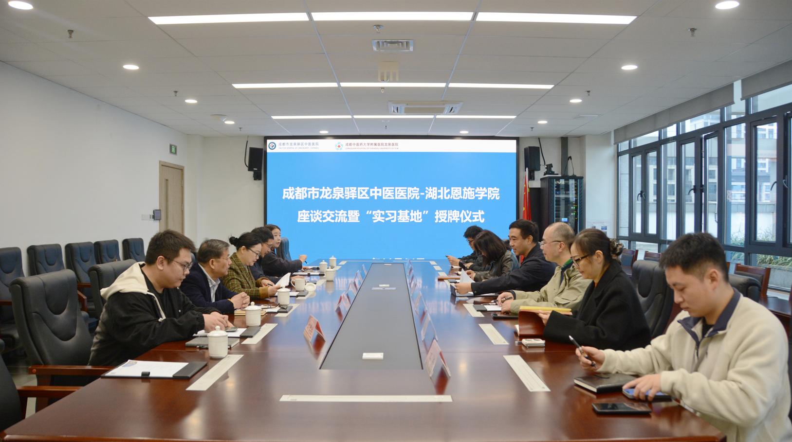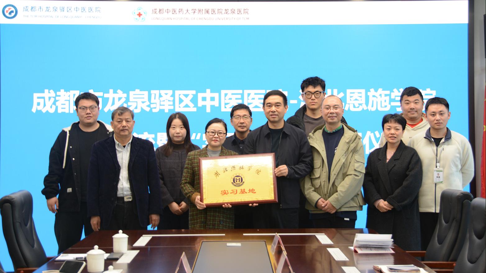 近日,湖北恩施学院与成都市龙泉驿区中医医院座谈暨实习基地授牌仪式在成都市龙泉驿区中医医院举行。双方就人才培养、资源共享等达成共识,此次签约标志着两地医疗教育合作迈上新台阶,双方在医教协同与产教融合方面迈出坚实一步,为学子提供更广阔的实习与就业平台。基地将依托医院优质临床资源,强化实践教学环节,提升学生专业技能与临床素养。
