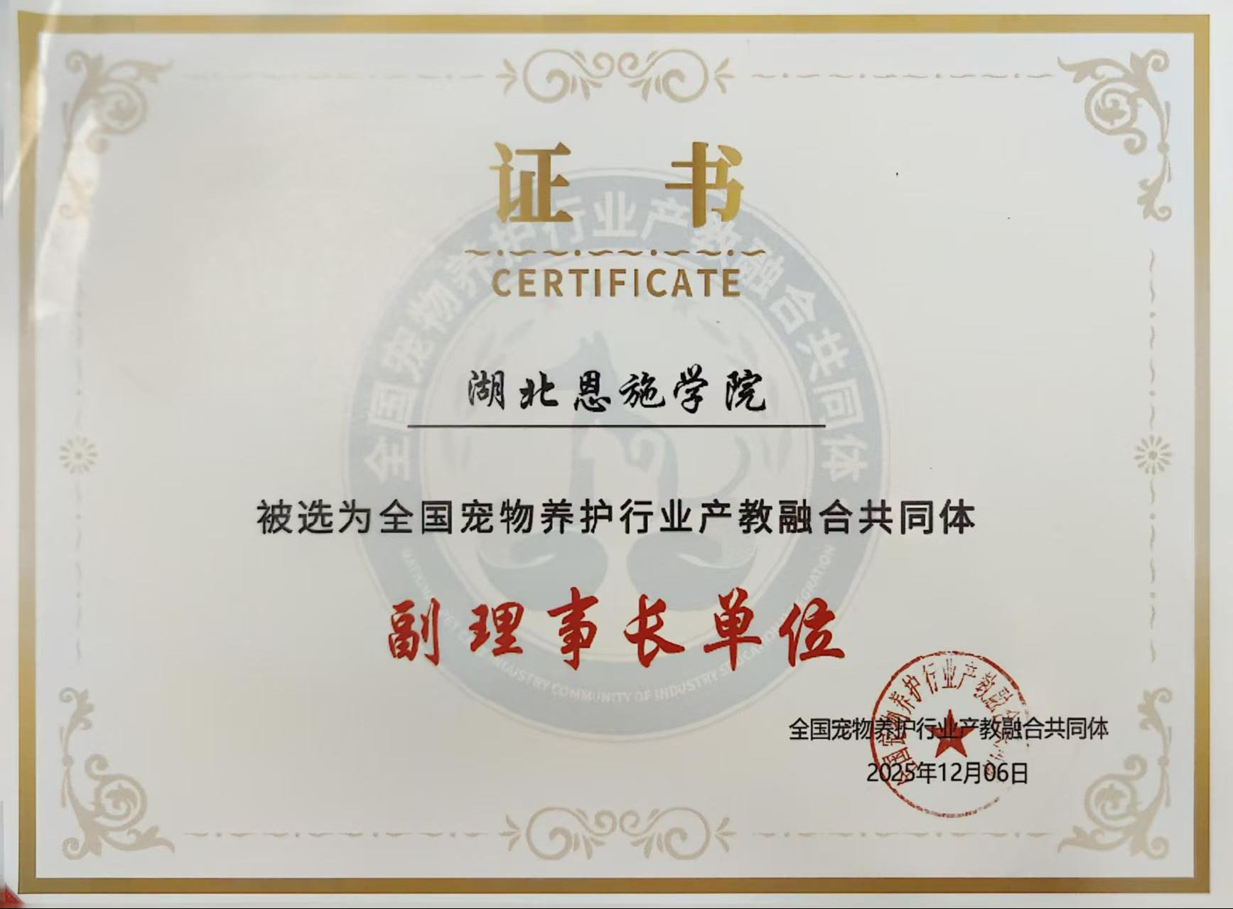 此次当选,是湖北恩施学院办学实力和行业影响力的重要体现,也是对学校长期以来坚持应用型办学定位、深耕产教融合工作的充分肯定。站在新的起点,湖北恩施学院将以此为契机,进一步整合资源、凝聚合力,为把全国宠物养护行业产教融合共同体建设成为引领行业职业教育改革、助推产业升级的示范性平台贡献“恩施学院智慧”与“恩施学院力量”,为我国宠物养护行业的繁荣发展与高素质人才培养谱写新的篇章。
