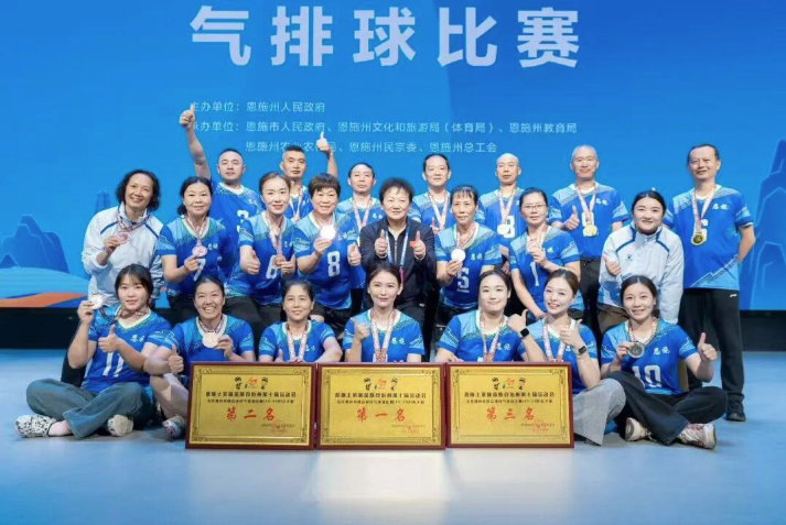 竞技赛场上,恩施学院学子与师生同样闪耀。2025年湖北省大学生田径运动会斩获2冠2亚,第24届CUBA湖北赛区女子组勇夺一级联赛冠军,全国传统武术比赛摘得男子南拳一等奖,省水上运动会包揽游泳项目全部冠军,全国健身气功大赛斩获个人一等奖与集体优胜奖;2025年第三届恩BA篮球赛中,学校篮球队获州直职工组季军,支禹捷老师与校友王超助力恩施咸丰白茶队斩获全国“村BA”总决赛亚军,尽显团结拼搏的精神风貌。
